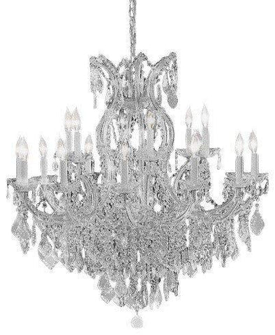 This beautiful Chandelier is trimmed with Empress Crystal(TM) This beautiful Chandelier is trimmed with Empress Crystal (TM) Maria Theresa 100% Crystal Chandelier. A great European Tradition. Nothing is quite as elegant as the fine crystal chandeliers that gave sparkle to brilliant evenings at palaces and manor houses across Europe. This two-tier version from the Maria Theresa collection is decorated with 100% crystal that capture and reflect the light of the candle bulbs, each resting in a scalloped bobache. The timeless elegance of these chandeliers is sure to lend a special atmosphere in every home.Assembly Required 16 LIGHTS Finish: Silver.