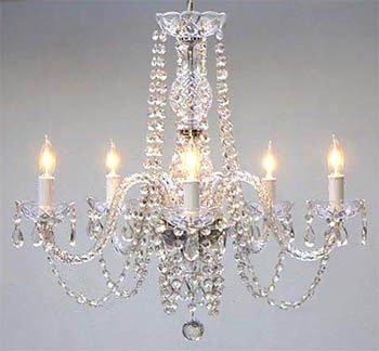 Set of 2 - This beautiful Chandelier is trimmed with Empress Crystal(TM) A Great European Tradition. Nothing is quite as elegant as the fine crystal chandeliers that gave sparkle to brilliant evenings at palaces and manor houses across Europe. This unique version from the Royal Collection features crystal tube arms is decorated with 100% crystal that capture and reflect the light of the candle bulbs, each resting in a scalloped bobache.The timeless elegance of this chandelier is sure to lend a special atmosphere anywhere it is placed! Please note this item requires assembly. This item comes with 18 inches of chain. SIZE:H.25" X W.24" 5 LIGHTS SHIPPING 25.00 assembly required sku# A46-384/5
